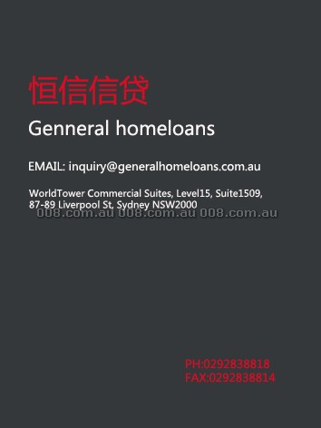 Genneral homeloans 恒信信贷 WorldTower Commercial Suites, Level15, Suite1509, 87-89 Liverpool St, S